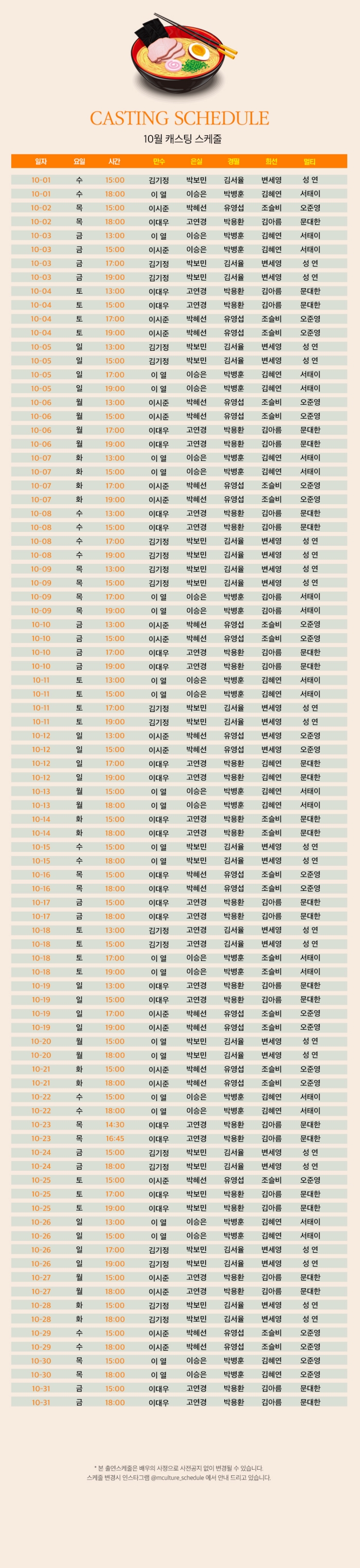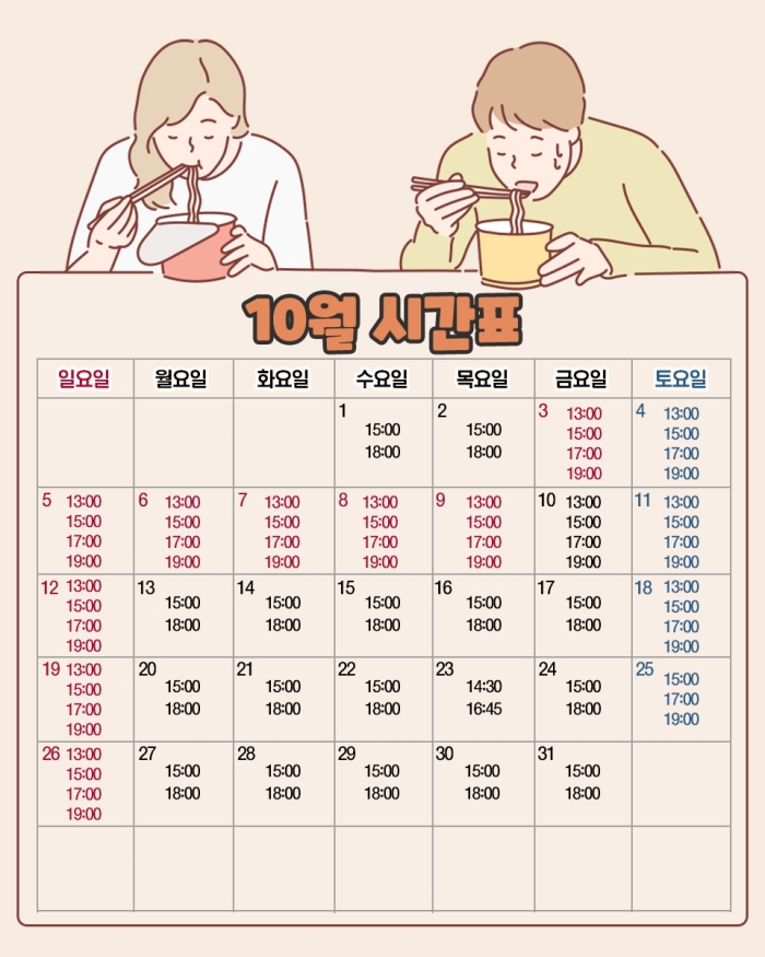* 10/3(금)~10/10(금) 1시, 3시, 5시 7시