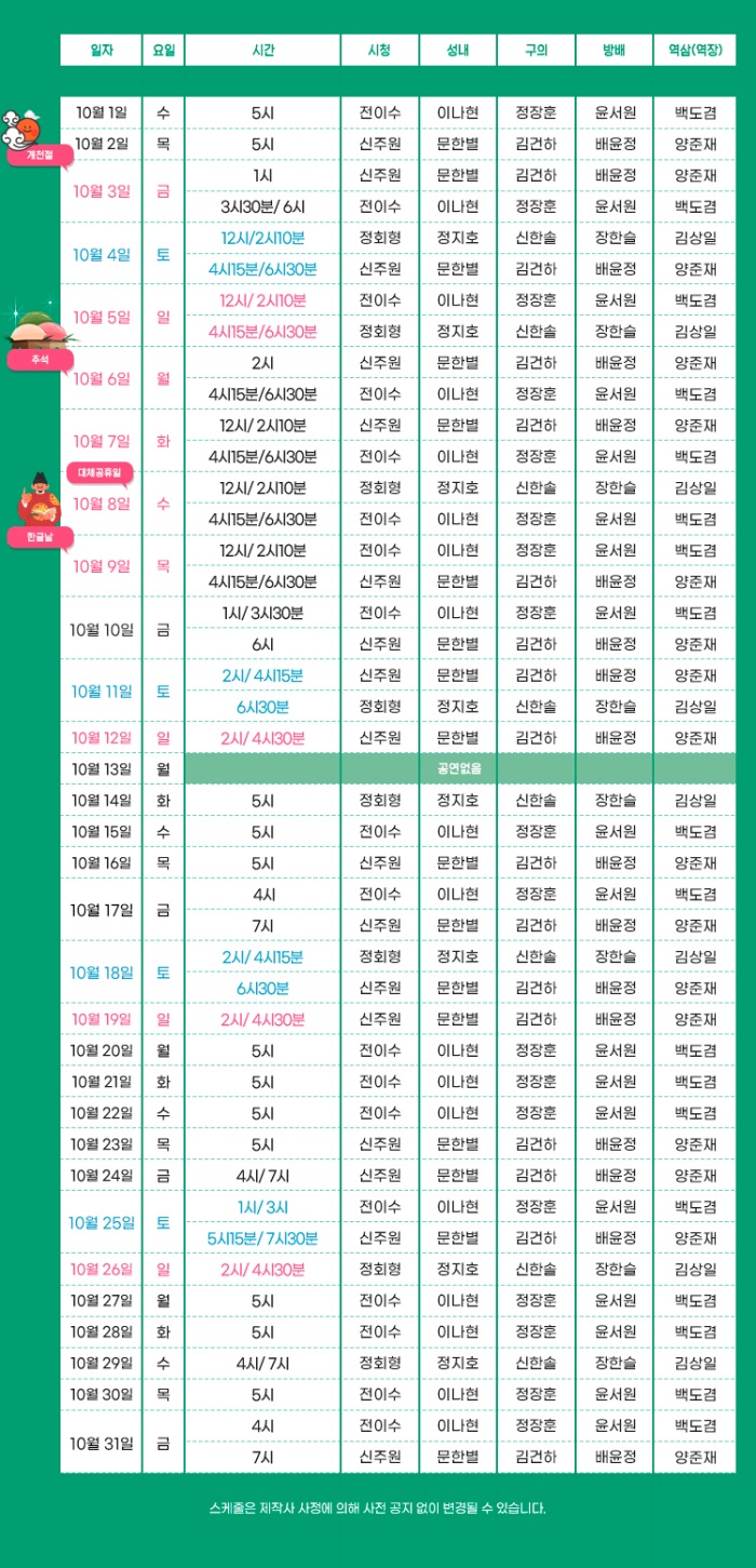 *10/13(월) 공연 없음