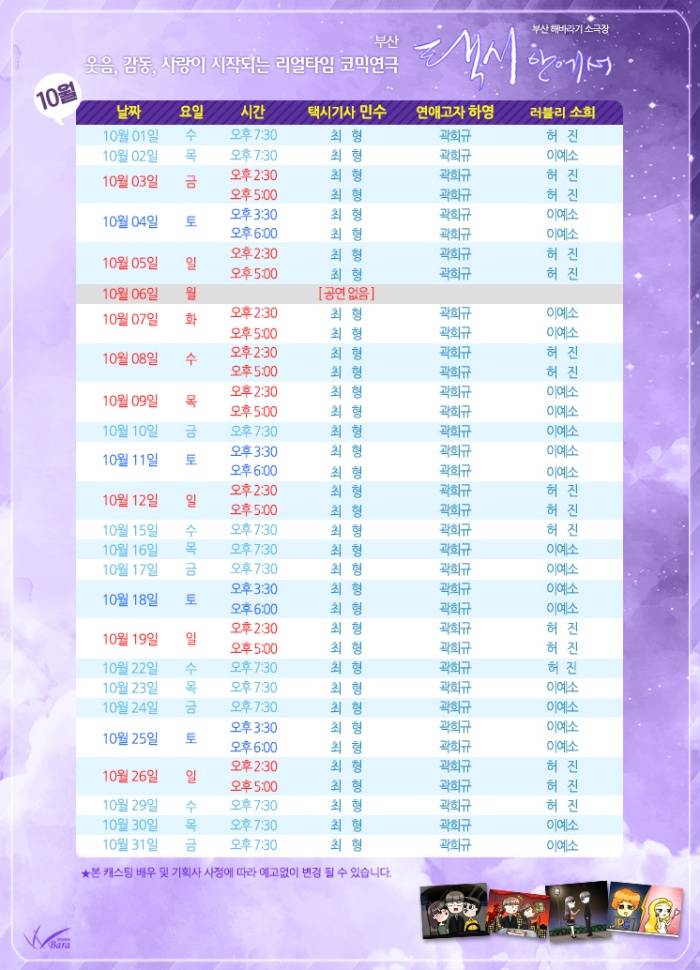 *10/03(금), 10/07(화), 10/08(수), 10/09(목) 오후 2시30분, 5시