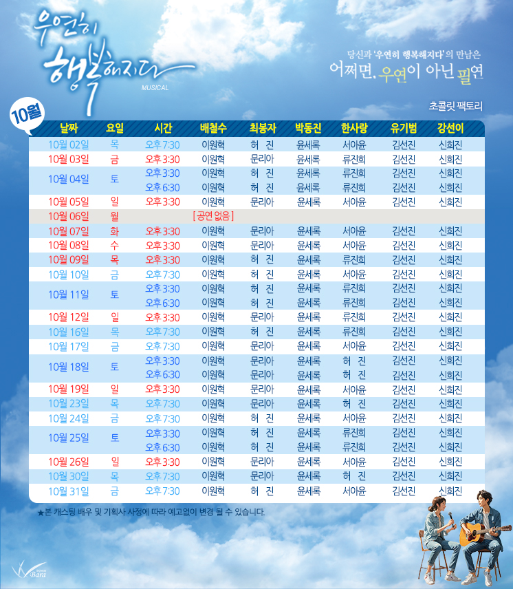 *10/03(금), 10/07(화), 10/08(수), 10/09(목) 오후 3시30분