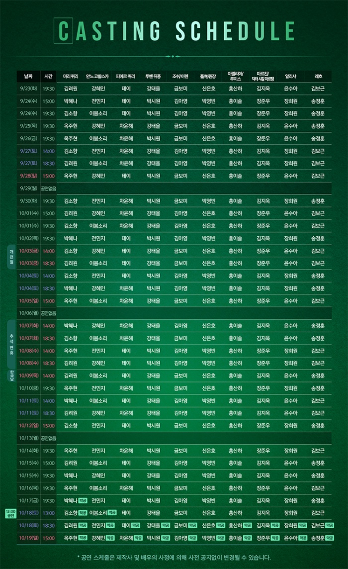 취소마감시간 : 공연일 1일 전 오후 5시 / 공연일이 일요일, 월요일인 경우 토요일 낮 12시 (단, 공연일 1일 전이 공휴일인 경우 공휴일 전 평일 오후 5시, 토요일 낮 12시)