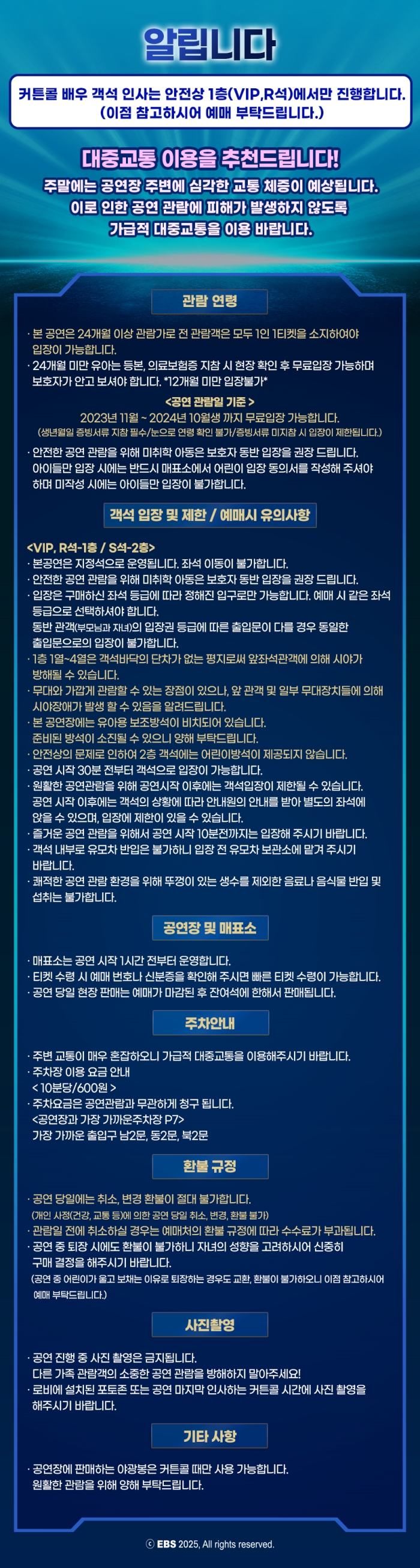 - 금 오전 11시, 오후 2시 / 토, 일 오전 11시, 오후 2시, 4시30분 (월~목 공연없음)