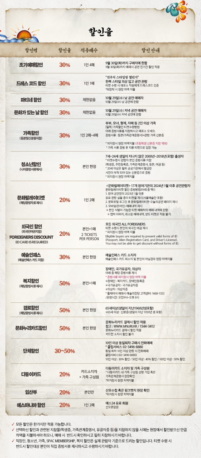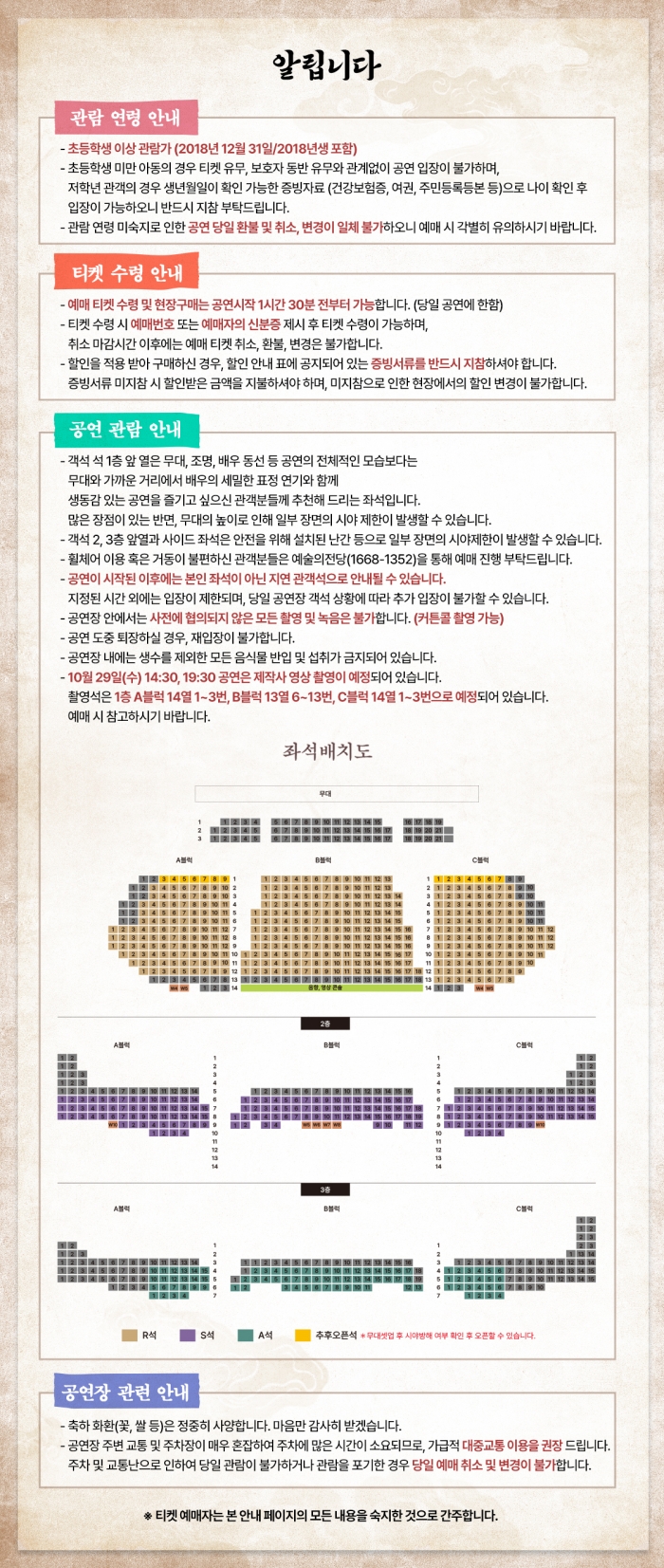 ※ 월요일과 공연없는 날에는 운행하지 않습니다.
