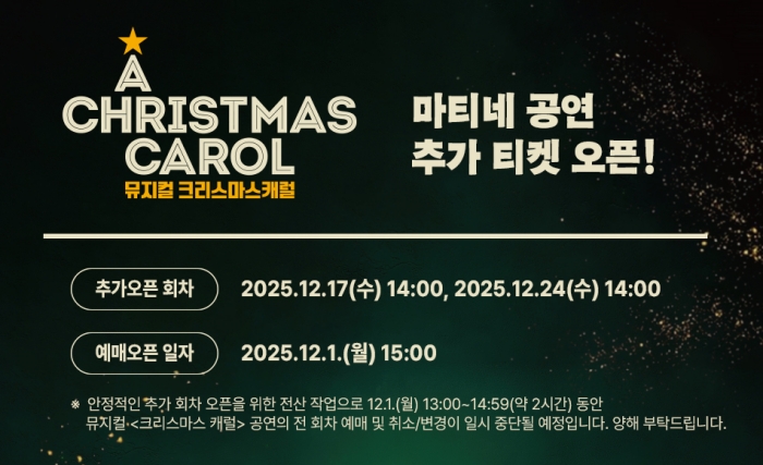 • 화~금 오후 7시30분 / 토, 공휴일 3시, 7시 / 일 3시 (월 공연없음)