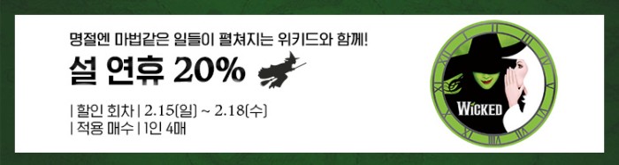 - 예매 티켓 수령/할인/증빙(차액), 관람 연령, 좌석에 따른 안내 미숙지는 관람자 본인에게 책임이 있으며, 해당 사유로 인한 예매 티켓의 취소/환불/변경은 불가합니다.