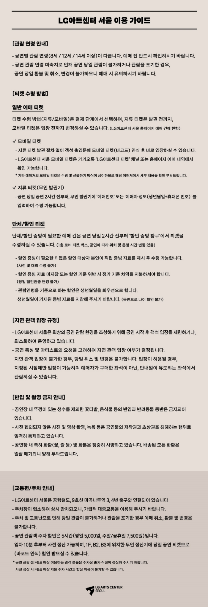 LG아트센터 서울 건물 지하에 주차장을 이용할 수 있습니다.