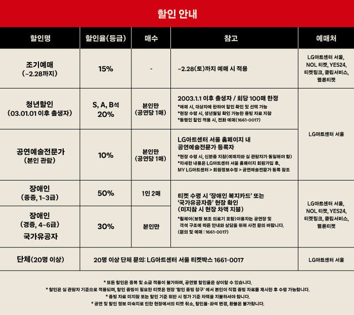 - 목, 금 오후 7시30분 / 토 2시, 7시 / 일 3시