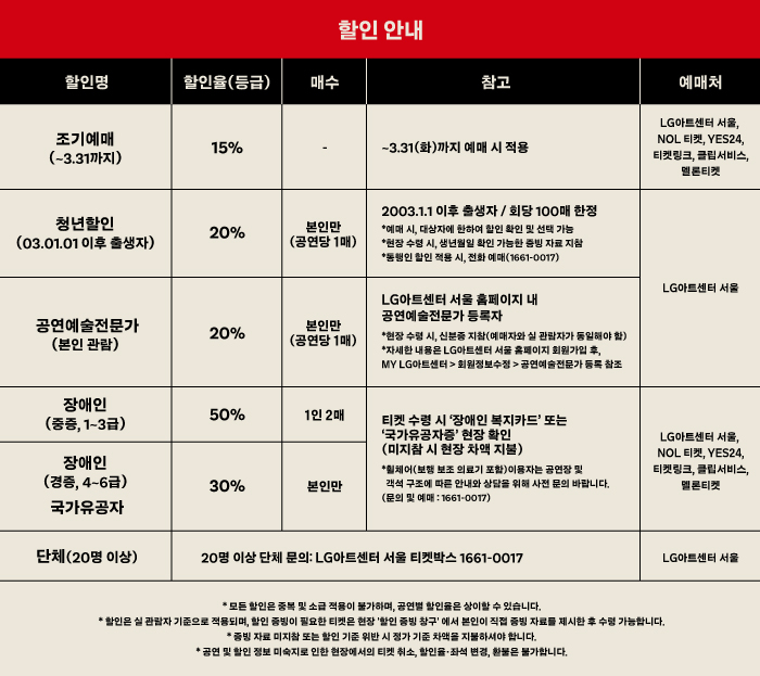 공연 관람객 및 교육 참가자는 할인된 금액에 이용이 가능합니다.