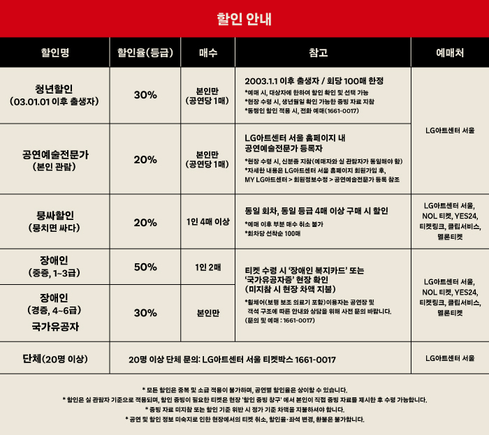 공연 관람객 및 교육 참가자는 할인된 금액에 이용이 가능합니다.