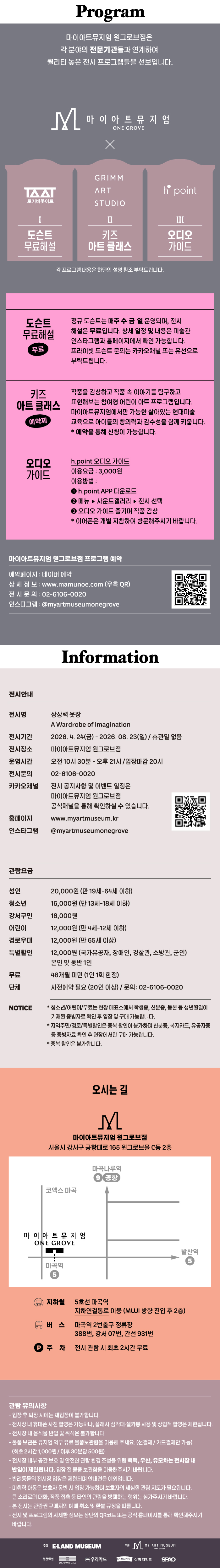 • 월~일 오전 10시30분 ~ 오후 9시 (입장 마감 오후 8시) * 휴관일 없음